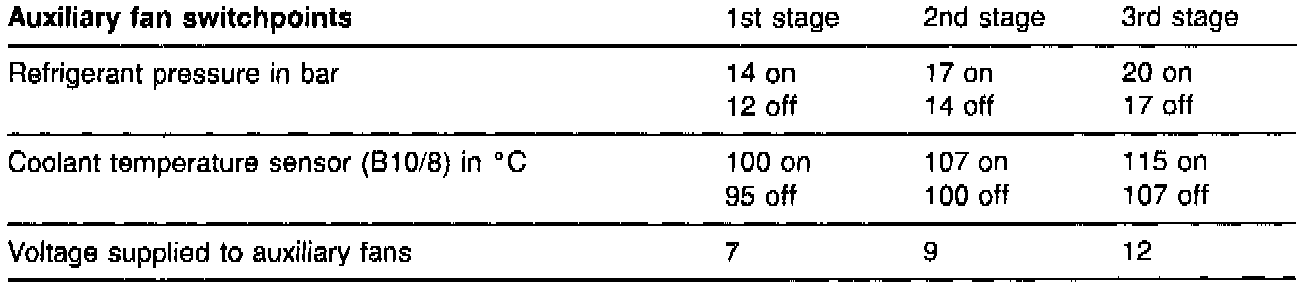 - All model 140 vehicles are equipped with two auxiliary fans. The current draw under operation in the 3rd stage is 35 amperes at 13 volts battery voltage. The auxiliary fans are protected by a 30 ampere fuse in the maxi-fuse box F2.