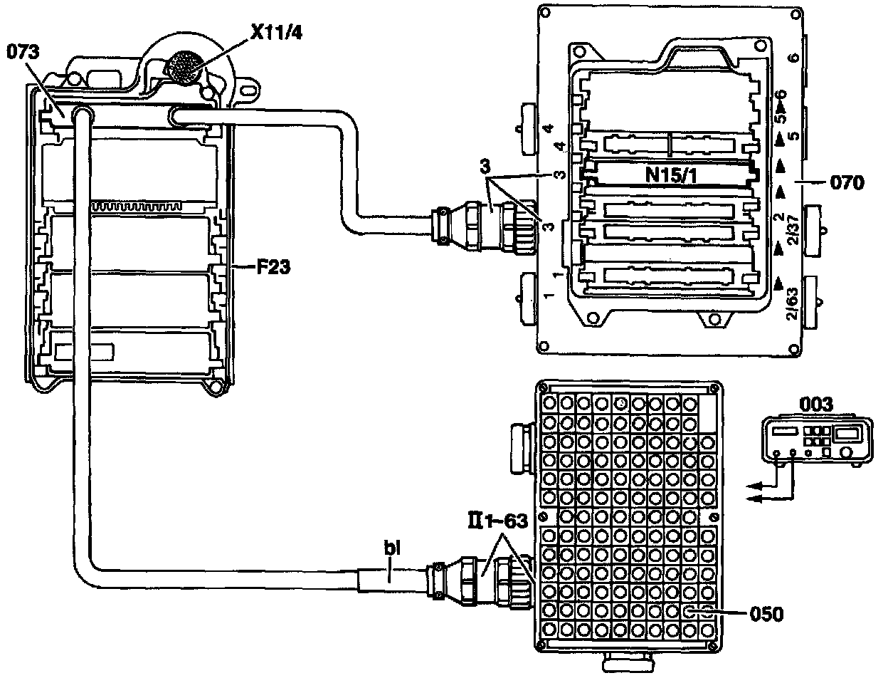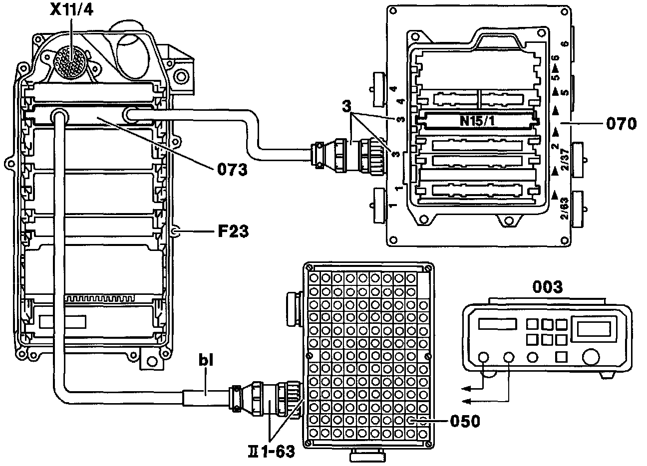2. Disconnect TCM (N15/1). Connect socket box (126-pole) with contact module 3 and contact box according to connection diagram below.