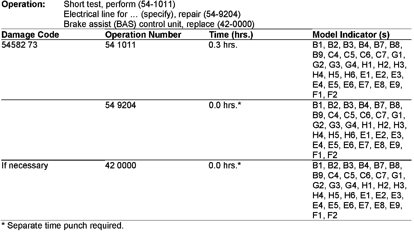 3. If the condition persists, replace the Brake Assist (BAS) control unit (refer to WIS document AR42.31-P-6001A). Refer to EPC for the latest BAS/ESP control unit part numbers.