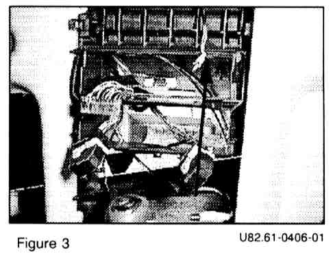 5. Run display unit cable and Ignition wire through center console. Ignition will connect in back of radio and Display Unit cable will go up behind the A/C push button unit and up to the center vent. (Figure 3)