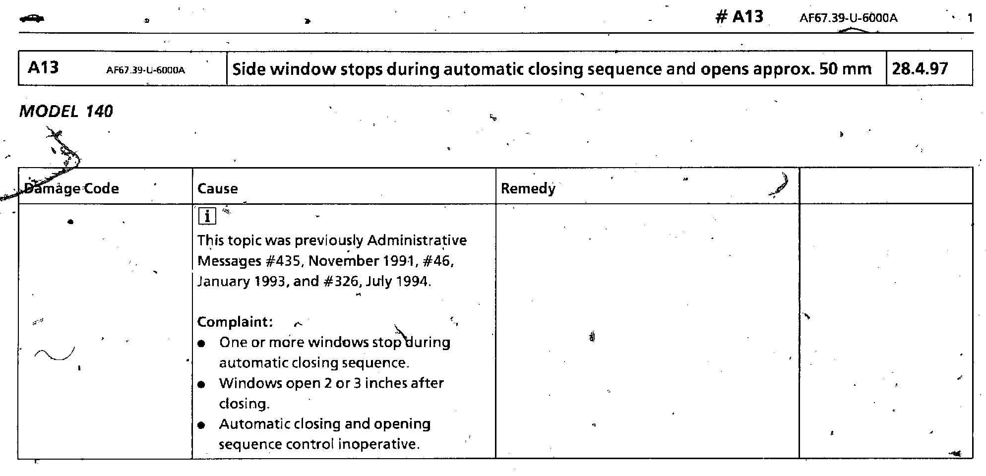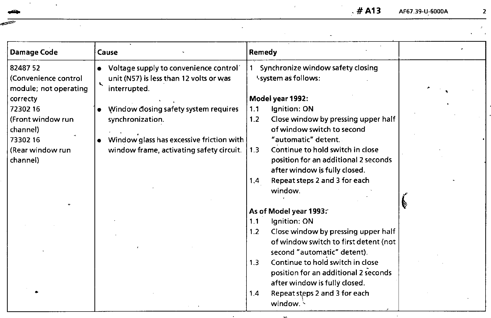 Side Window Stops During Automatic Closing Sequence