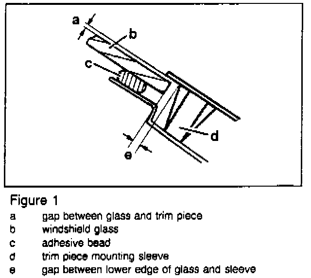 When installing the trim pieces, make certain to maintain a gap (a, Figure 1) between the trim pieces and the glass by using a piece of paper as a gauge. If necessary, place 2 mm thick rubber or plastic washers under the trim piece mounting sleeves (d) to raise the trim piece off the glass.