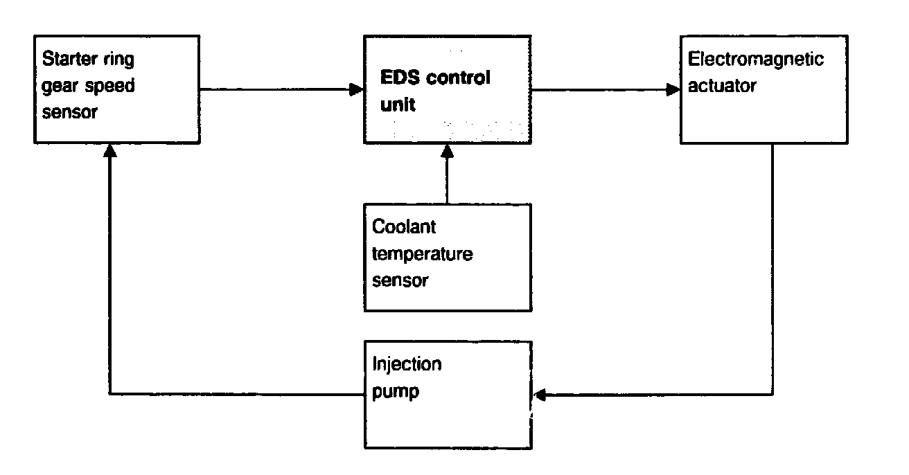 The starter ring gear speed sensor (L3) picks up the engine speed (144 impulses per revolution) and sends it in the form of an AC voltage signal to the EDS control unit. The EDS control unit processes the rpm signal and performs a nominal/actual value comparison.