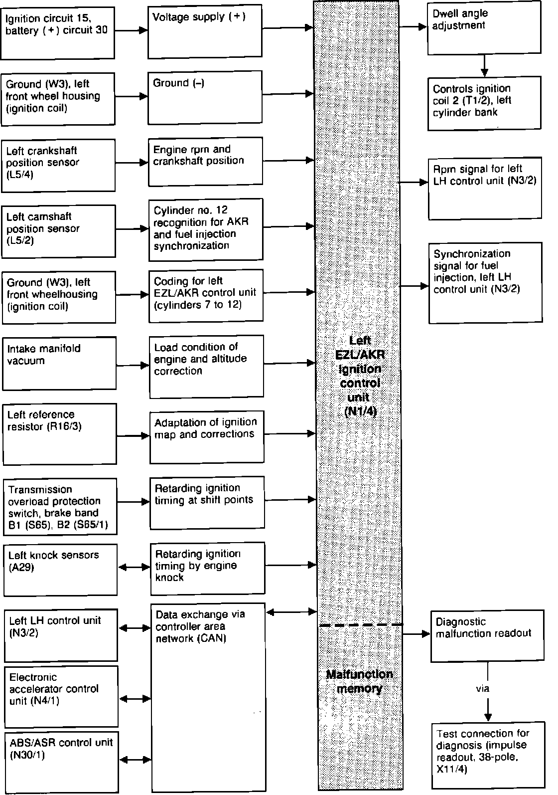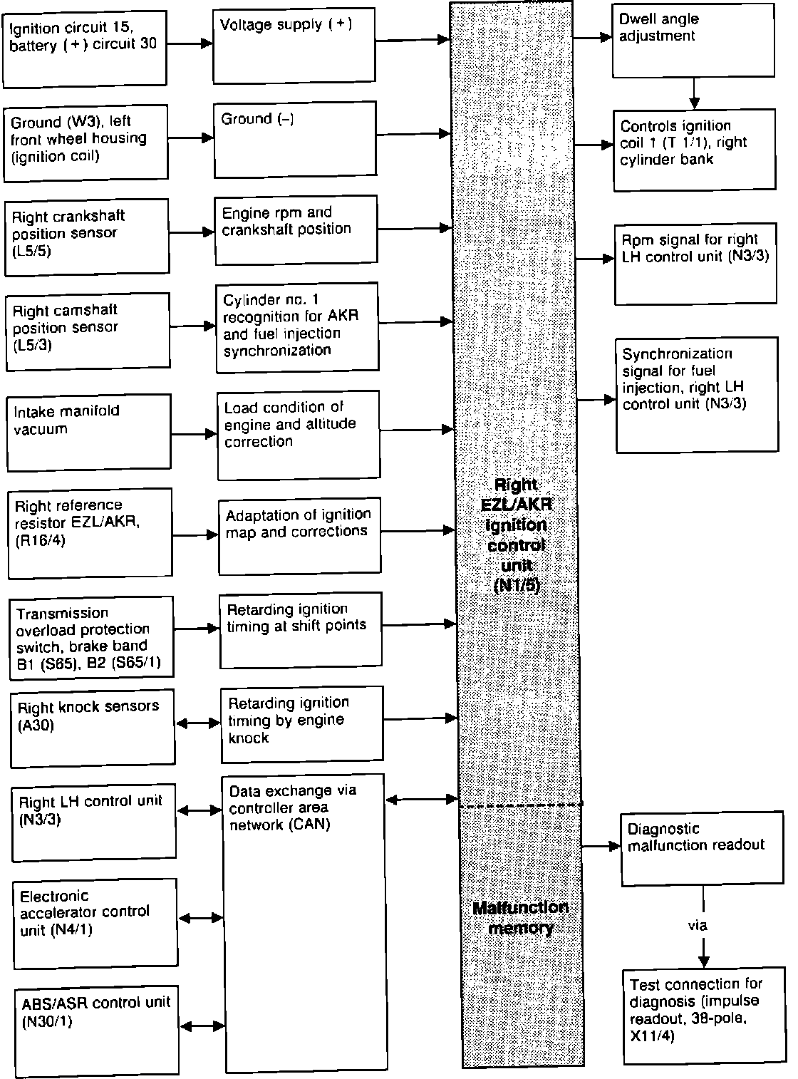 The two ignition control modules (N1/4 and N1/5) contain a microcomputer, pressure sensor and the power output stage for control of the ignition coil.