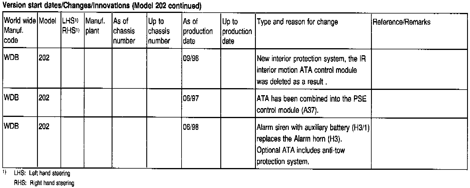 Version start dates/Changes/Innovations (Part 1 of 2)