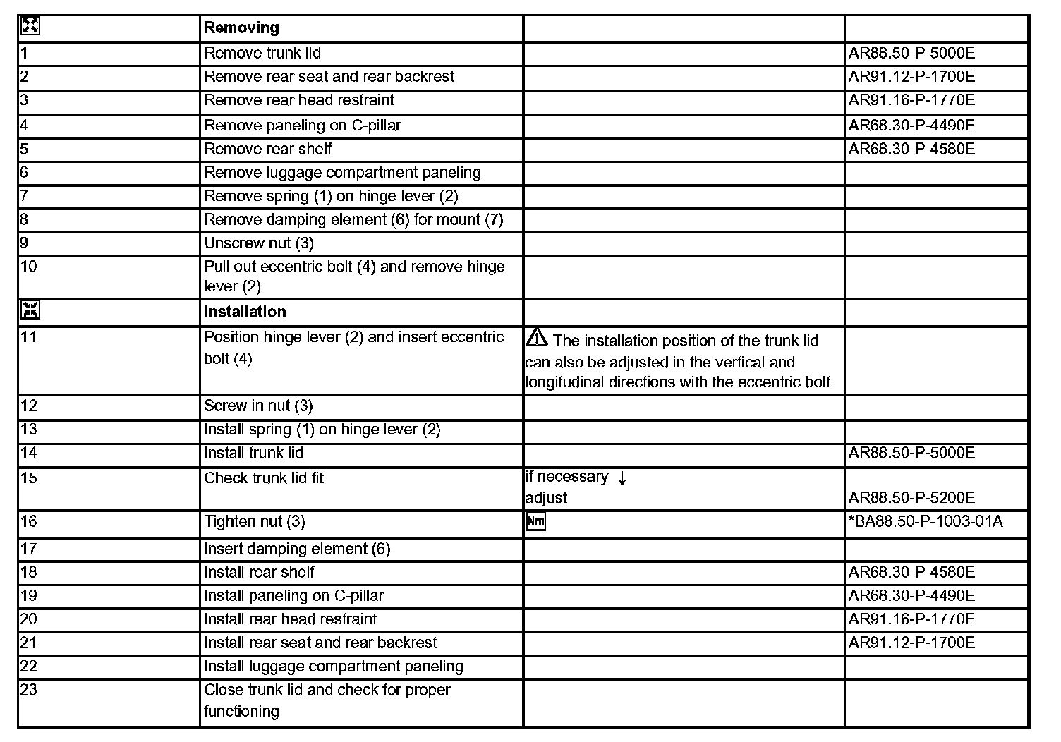 AR88.50-P-5120E Removing And Installing Hinge Lever For Trunk Lid