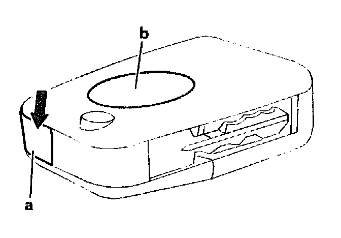 When locking, keep button (b) on transmitter pressed down, after approx. 1 second any side windows and the tilting/sliding roof start to close should they be open. The closing process is interrupted if the button on the transmitter is released or the infrared beam between the transmitter and the receiver is interrupted.