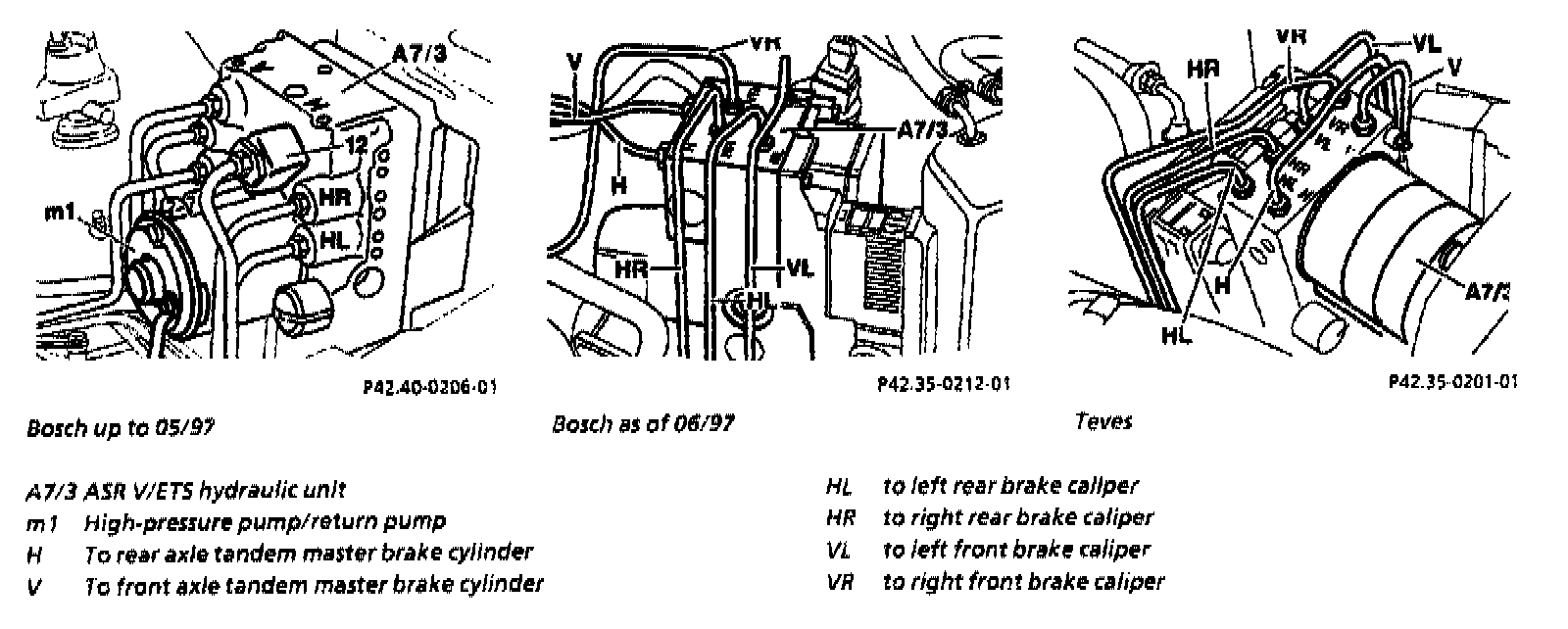 The ABS and ASR or ETS switching components are combined in the ASR/ETS/ESP hydraulic unit (A7/3).