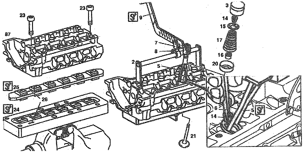 - Remove cylinder head (87) from assembly base (24); remove valves