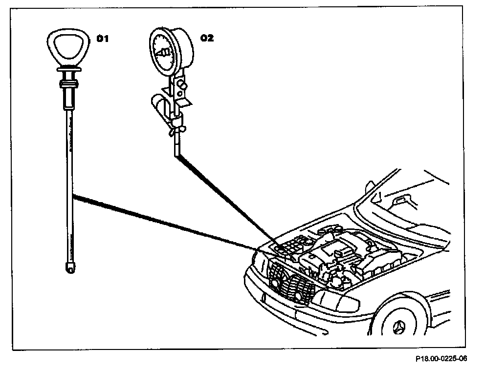 - Introduce the measuring rod (01) with the measuring scale pointing to the engine side and take it out after three seconds.