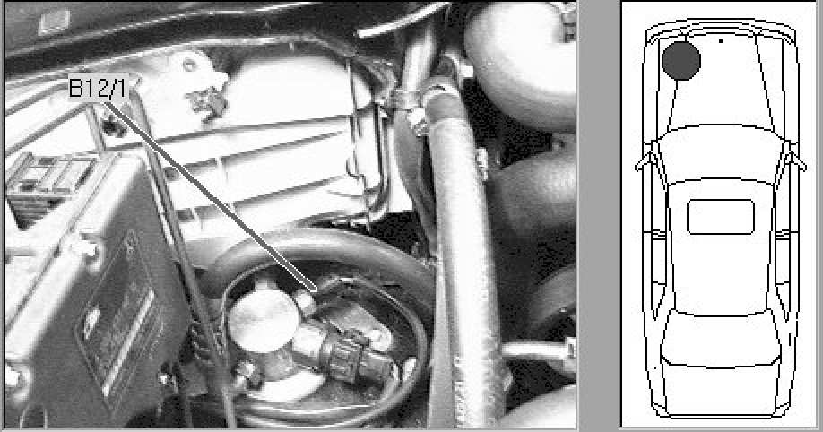Engine compartment, left front bottom, on receiver-drier