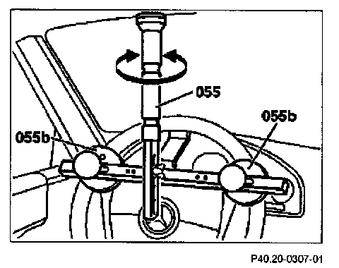 NOTE: The flexible mount of the wishbones results in a correspondingly large toe-in value which reduces to the correct dimension in the ready-to-drive condition.