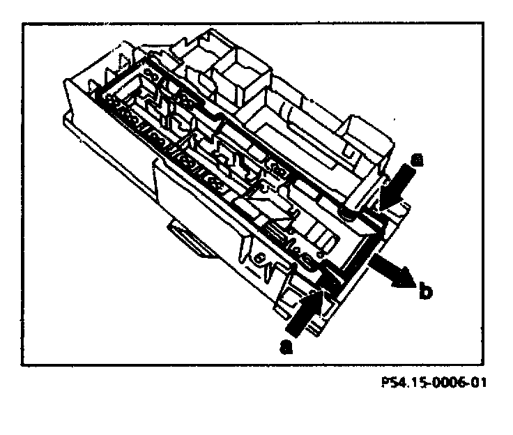 Press together slide locks on the knurled side (arrows "a") and push in direction of arrow (b).