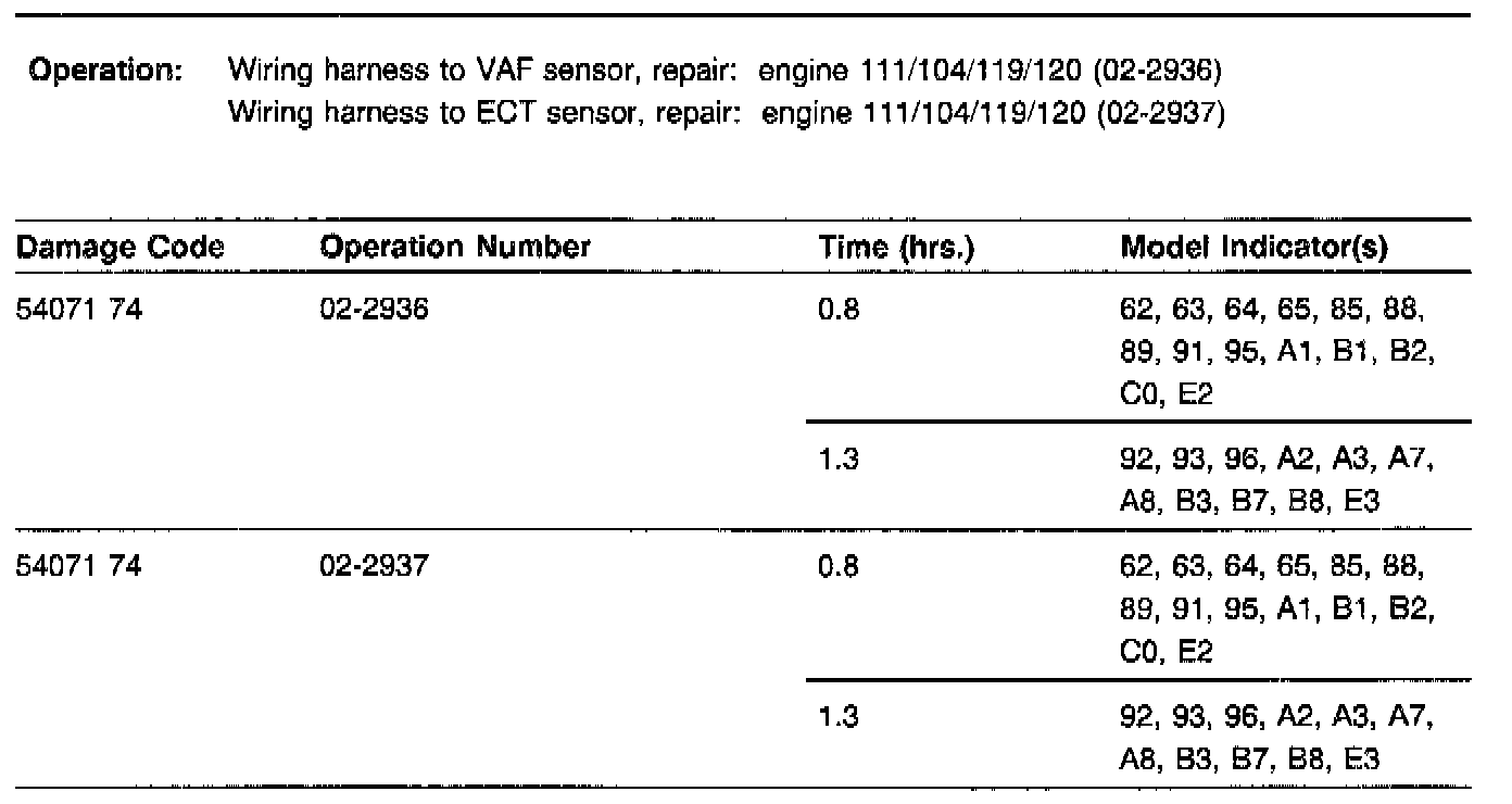 In the event the wiring harness in the area of the volume air flow (VAF) sensor connector or the engine coolant temperature (ECT) sensor connector becomes damaged (e.g. broken wires), the harness can be repaired, thereby avoiding costly replacement of the entire engine wiring harness.