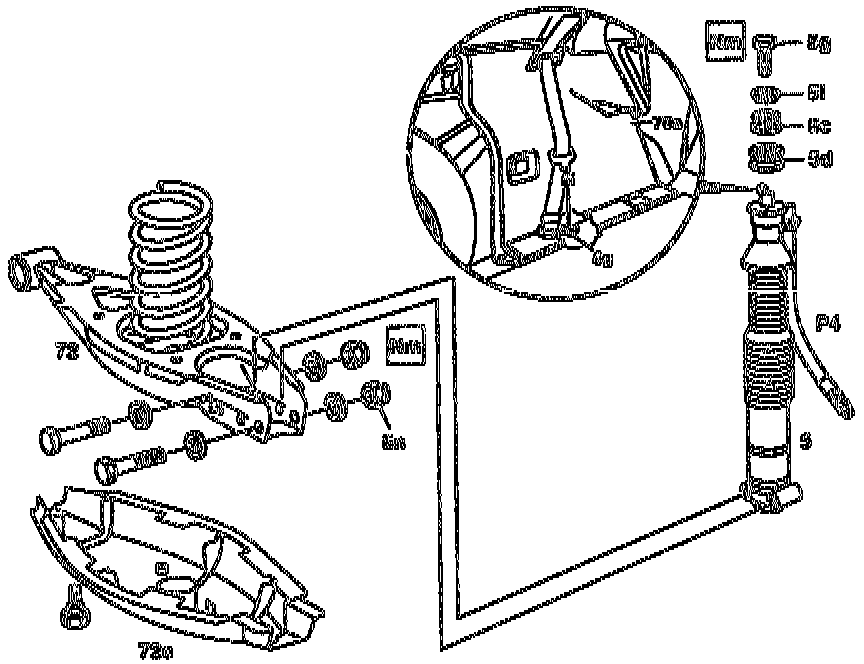 7. Dismantle, remove spring strut (5) at spring link (72)