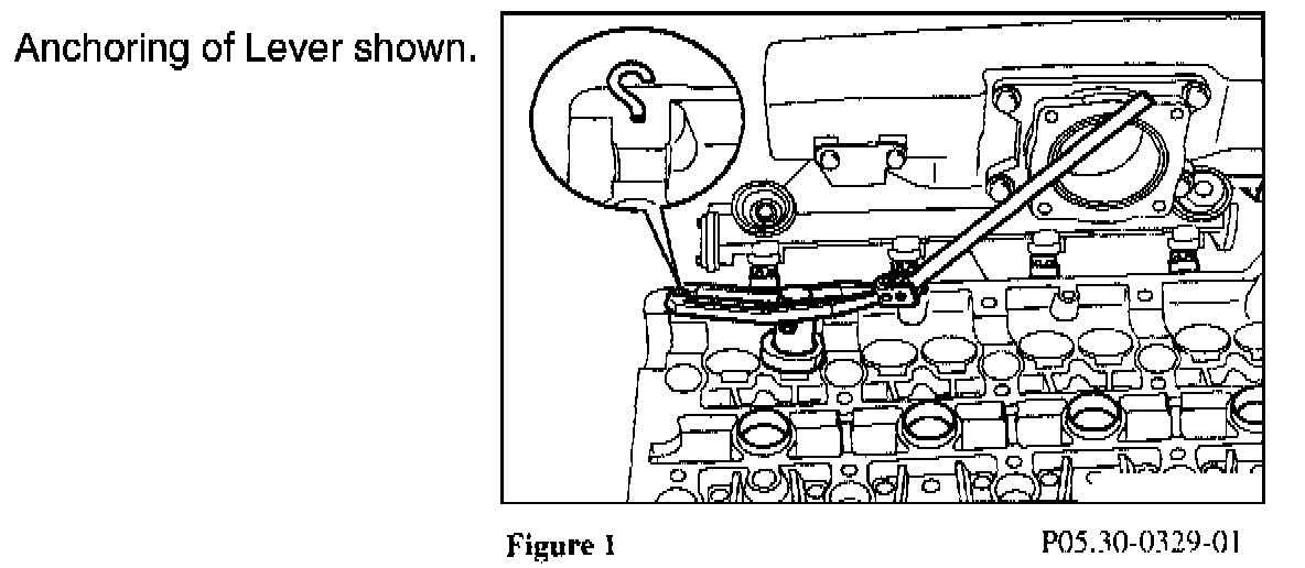 This comprehensive tool kit is available for removing and installing valve springs. With this tool kit, the anchoring of the lever arm (Circle, Figure 1) is achieved using the existing threaded holes in the cylinder head. On engines with hydraulic lifters, the valve keepers can be removed and installed by pressing down on the valve spring with the mounting element. The mounting element will also work with angled valves, as in V8 and V12 engines, and in the confined space of the engine compartment. This permits the valve springs to be easily removed and installed in order to change valve stem seals, for example, with the engine still installed in the vehicle. The tool kit comes with a German instruction sheet. Included in this Service Information is an English version of the Operating Instructions.