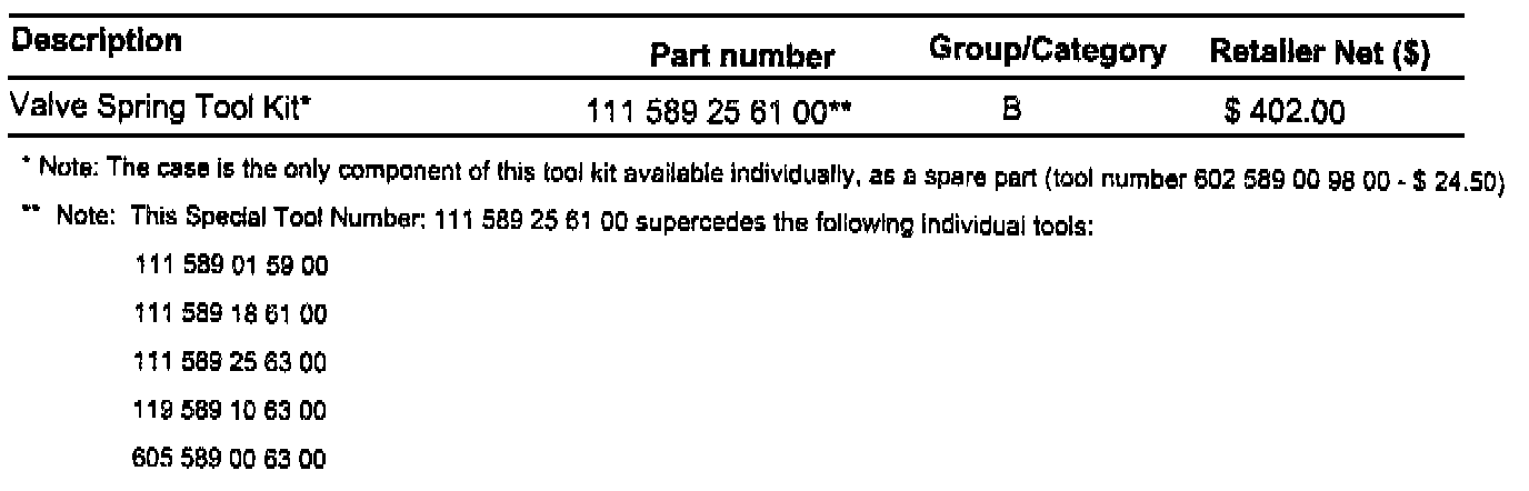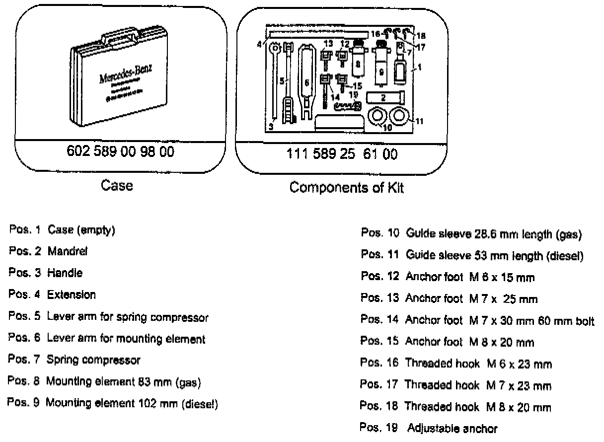 VEHICLES WITH ENGINES 104, 111, 112, 113, 119, 120, 601-606 UNIVERSAL TOOL FOR REMOVING AND INSTALLING VALVE SPRINGS