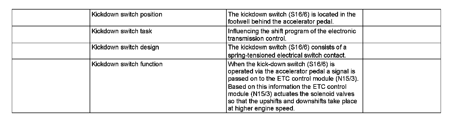 GF27.19-P-5105G Kickdown Switch, Location/Task/Design/Function