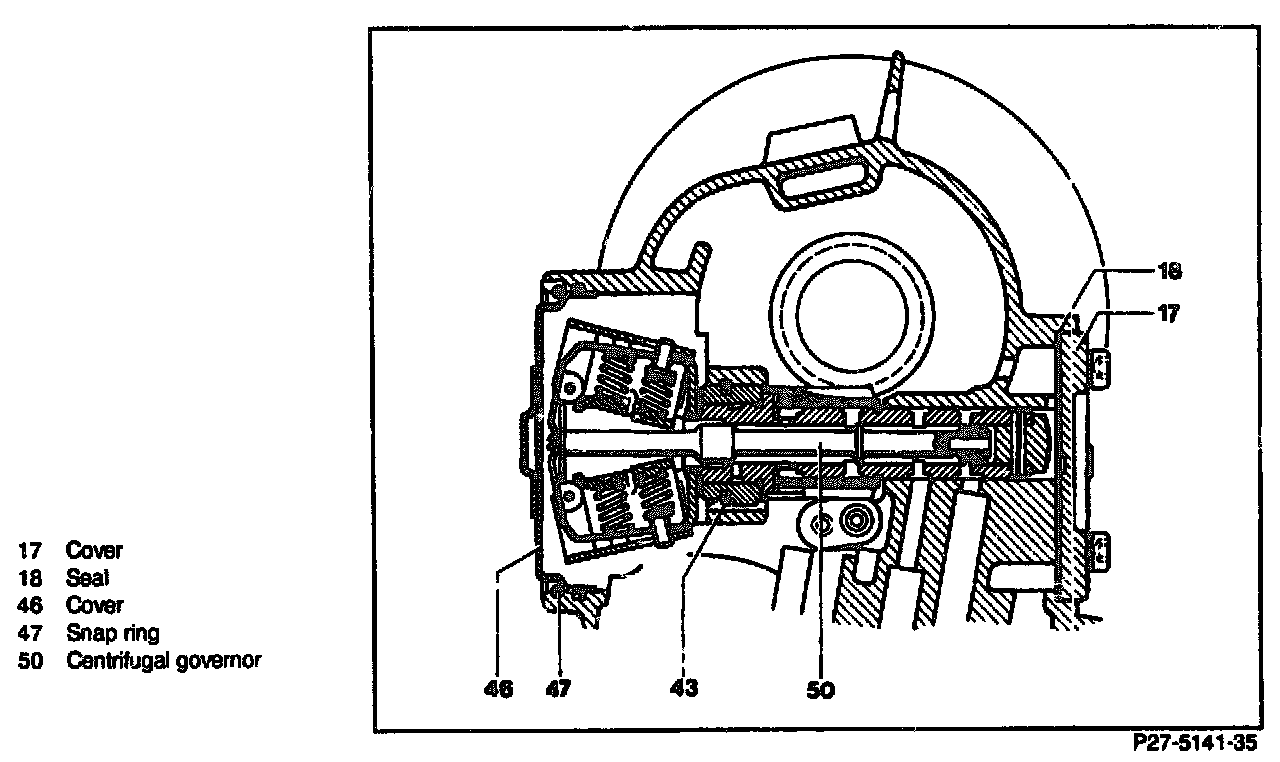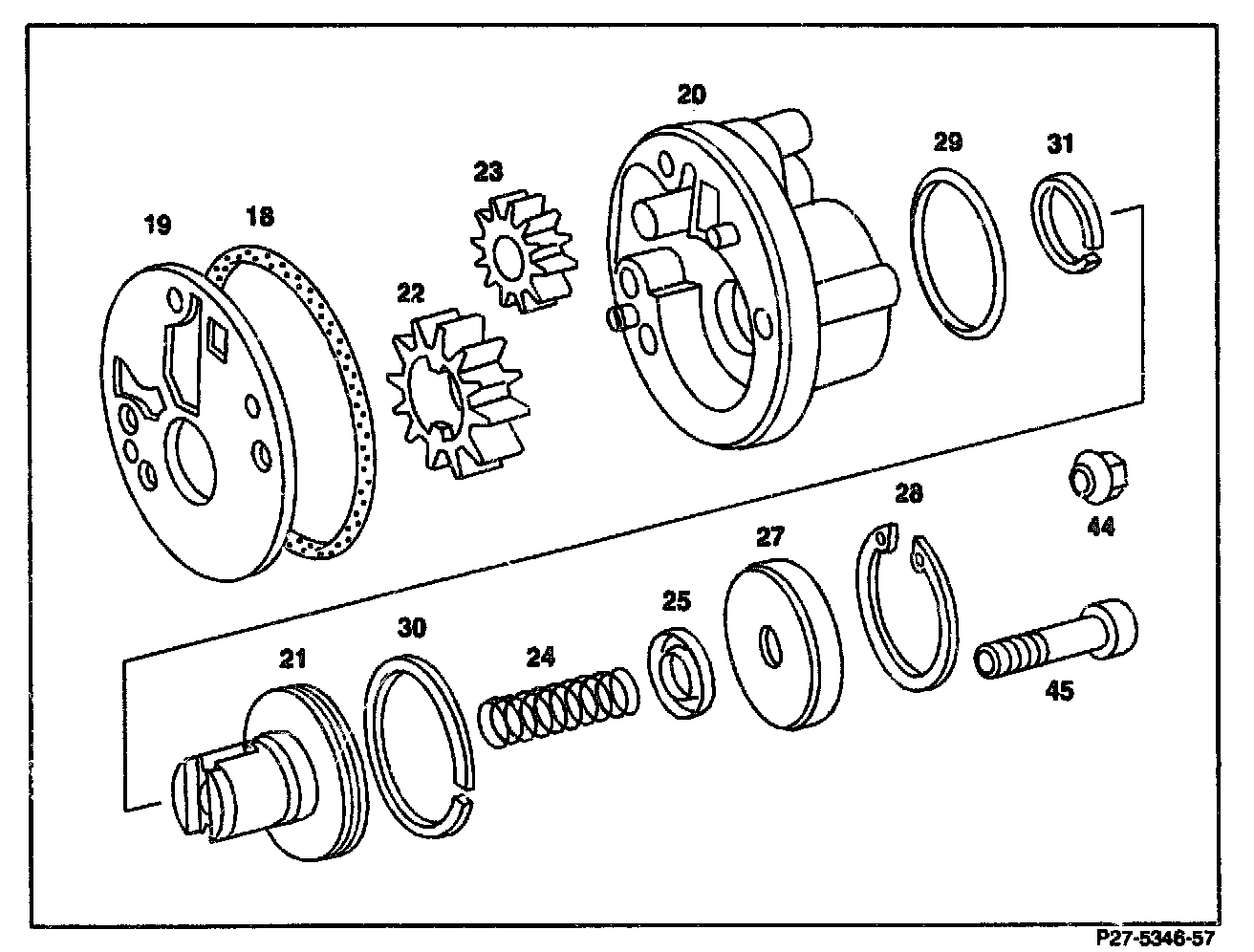 Pressure spring (24), spring plate (25), cut-off piston (21) Take out pump housing (20), check O-ring (29) and Teflon rings (30, 31), replace if necessary.