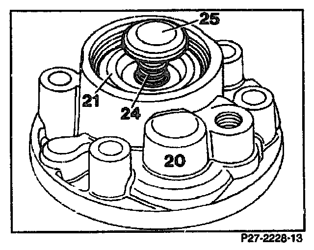 3. Remove cutoff piston (21) and pressure spring (24) together with spring plate (25) from pump housing.
