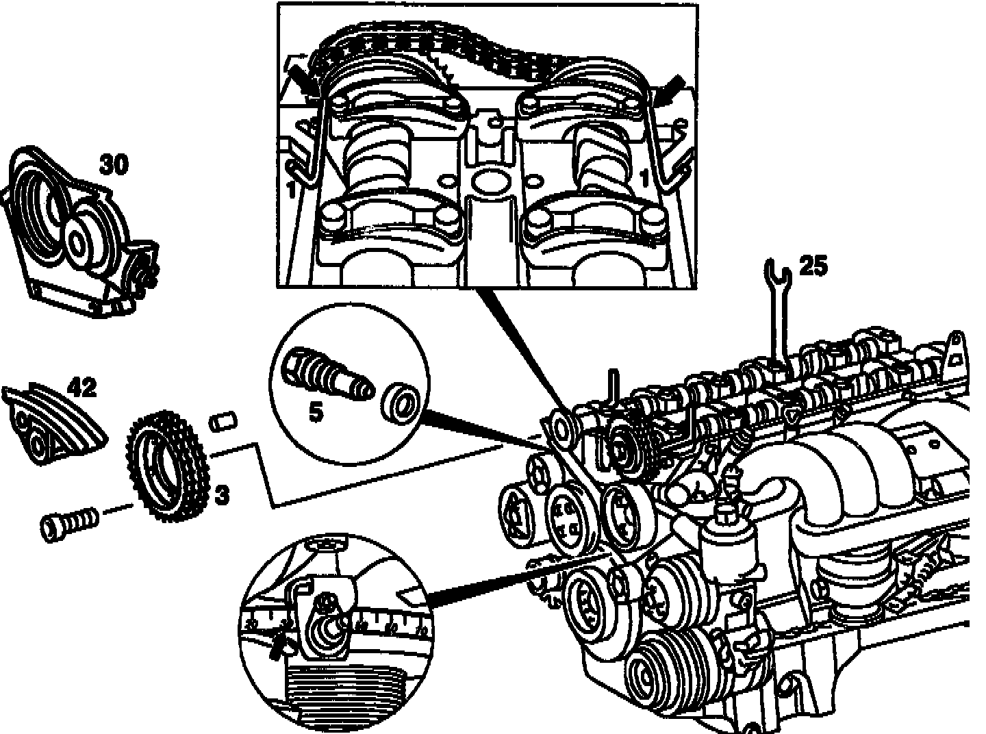25. Adjust basic position of camshafts. Refer to Camshaft, Engine - Adjustments Adjustments
