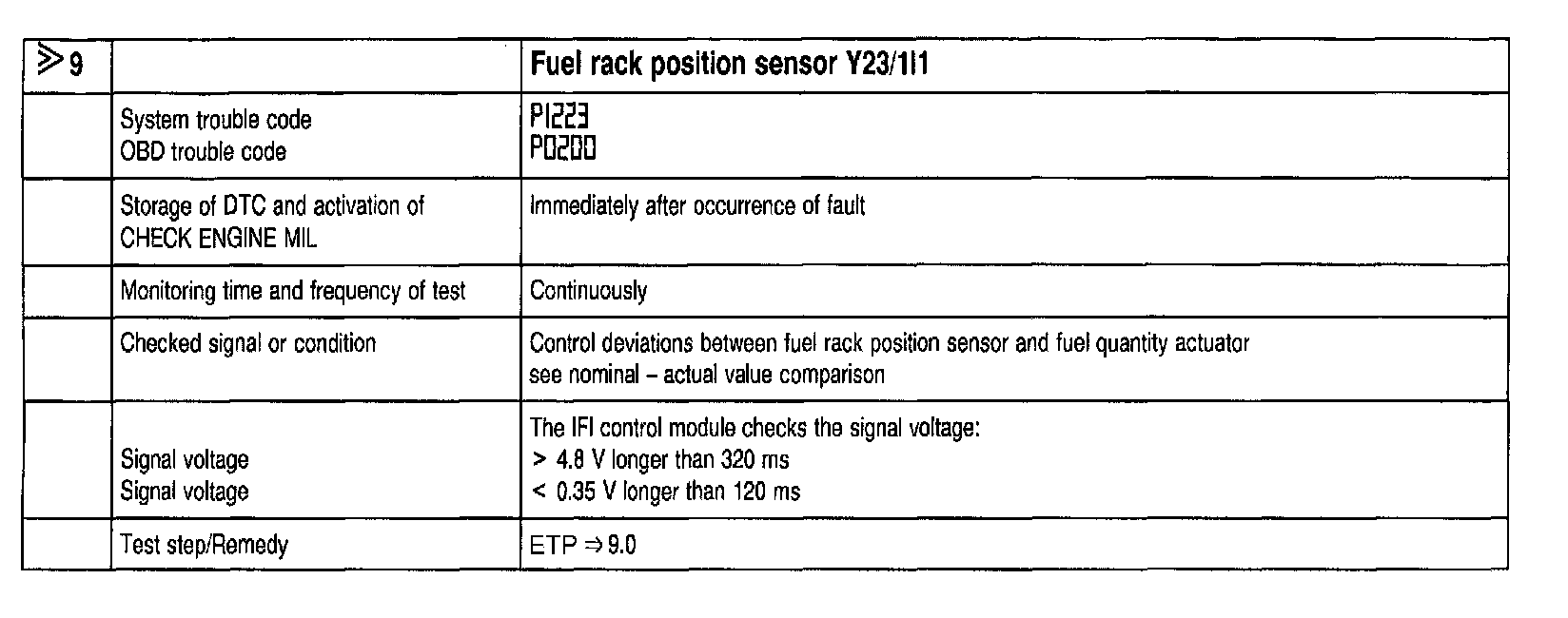 Chart 9: Fuel Rack Position Sensor, Y23/1 1