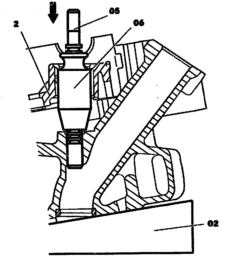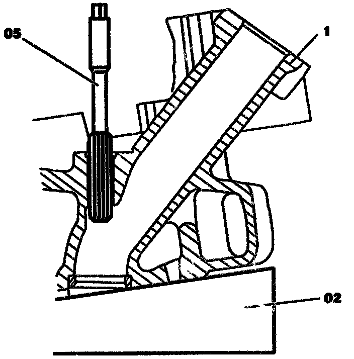 Use a suitable aluminum drift as an extension in order to press through the broaching tool (05) in the area of the guide sleeve (06).