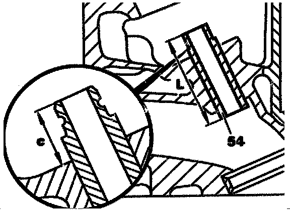 f. Examine insertion depth (c) of the valve guide (54), adjust to correct insertion depth if necessary.