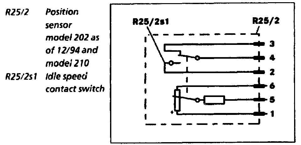 Consists of a resistance rotary potentiometer which is linked to the accelerator pedal by a Bowden cable, and an idling speed contact switch (R25/2s1).