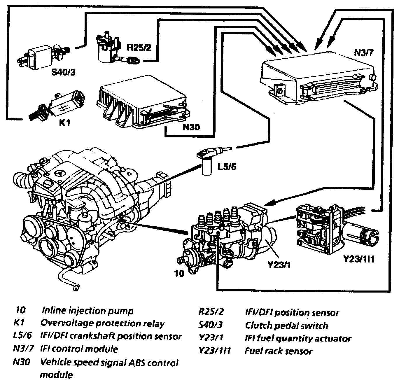 The IFI control module (N3/7) is supplied with an engine speed signal by the IFI/DFI crankshaft position sensor (L5/6). Fuel metering control is performed if irregularities exist, e.g. load change or gearshift.