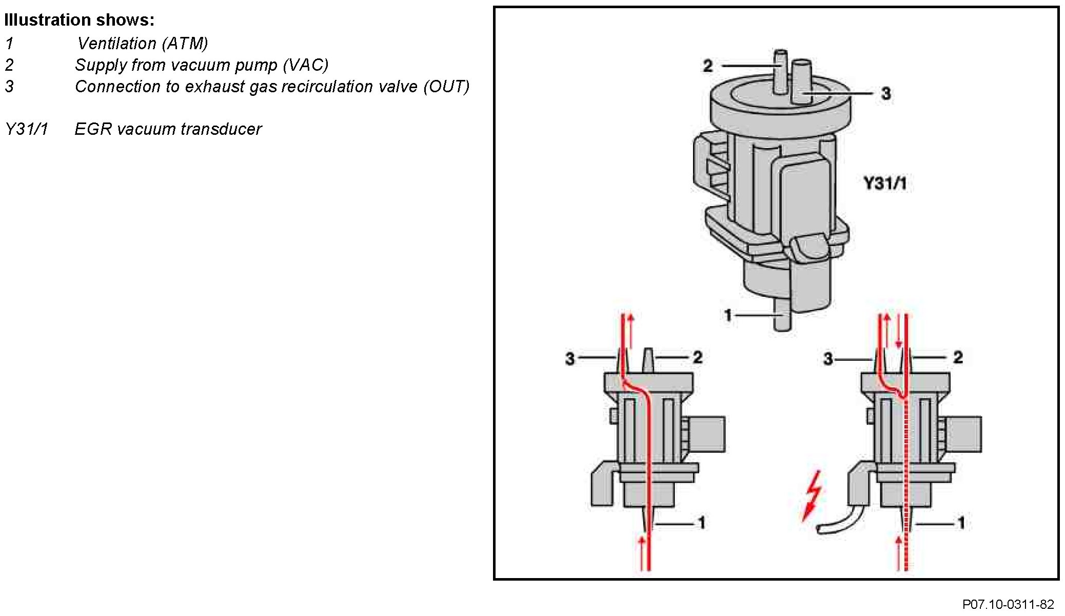 Connection (1) and (3) connected - EGR valve closed (ventilated)