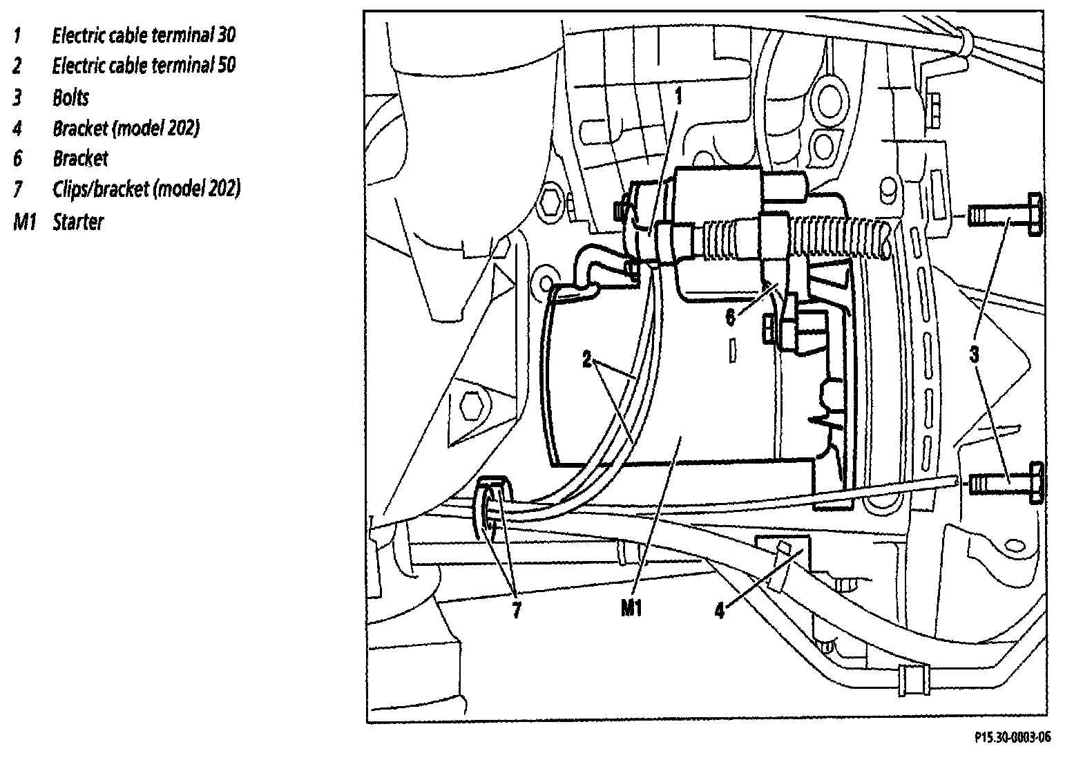 3 Disconnect electric cables (1) terminal 30
