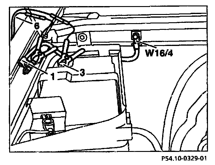 - Connect terminal of negative cable (-) to splash wall ground point (W16/4).
