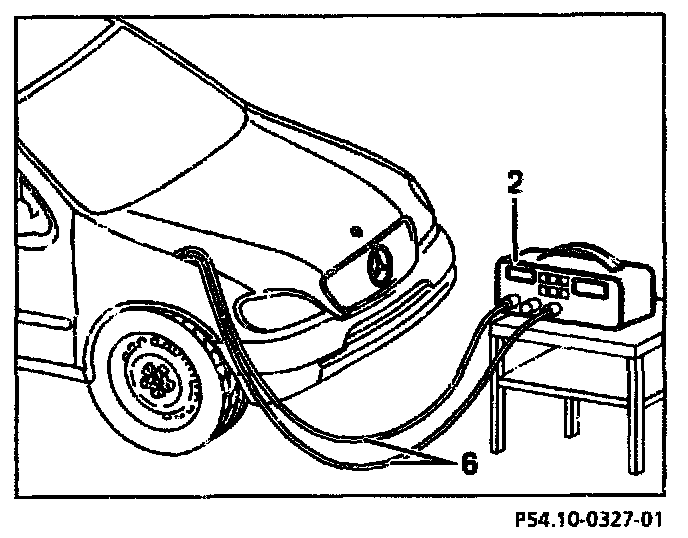 - Connect measuring cable, positive (+) to negative cable (1) of the battery.