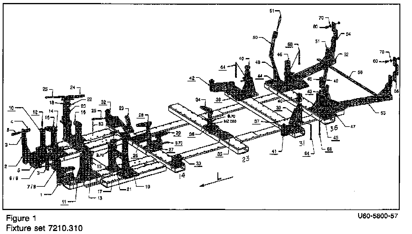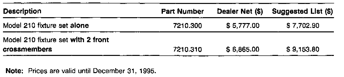 A Celette fixture set, used for chassis repair, is available for model 210 (Figure 1). This set is available through the Mercedes-Benz Standard Equipment Program.