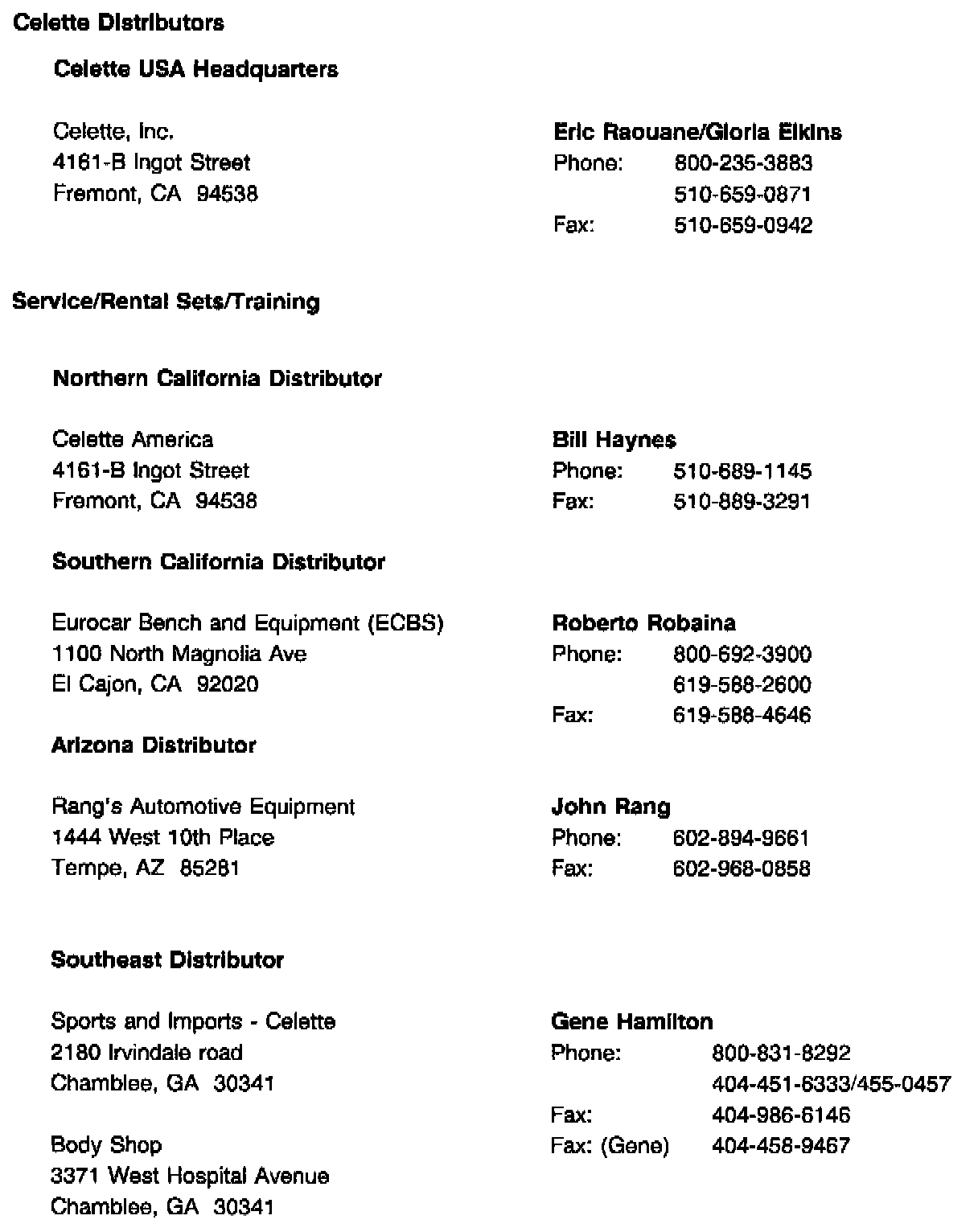 Dealers who wish to place an order should complete a Mercedes-Benz Standard Equipment Program order form (S-0426-000) and enclose a check, payable to Celette, Inc., for the purchase price (California dealers, please add applicable sales tax) and forward both to your nearest Celette distributor (please see address list in this bulletin). For additional ordering information/procedures, see Standard Equipment Program catalog.