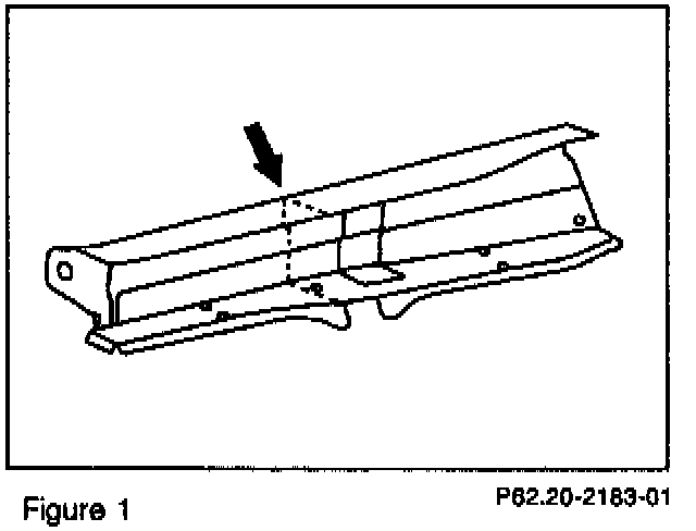 The repair instructions "Replacing longitudinal member front section" outlined in AR62.20-P-1260F, have been revised to include a new sectioning procedure for front longitudinal members. The newly approved sectioning point behind the front subframe mounting point, forward of the shock absorber console, is defined in the repair instructions. The previously approved sectioning point (Figure 1) remains valid also.