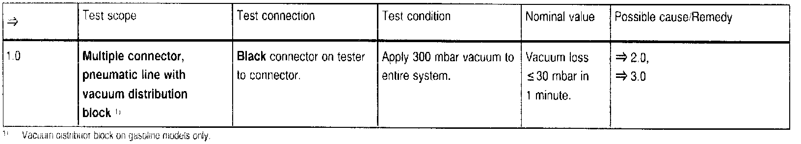 1. Connect tester to one end of pneumatic line and plug other end with cap, part no. 000 987 11 45.