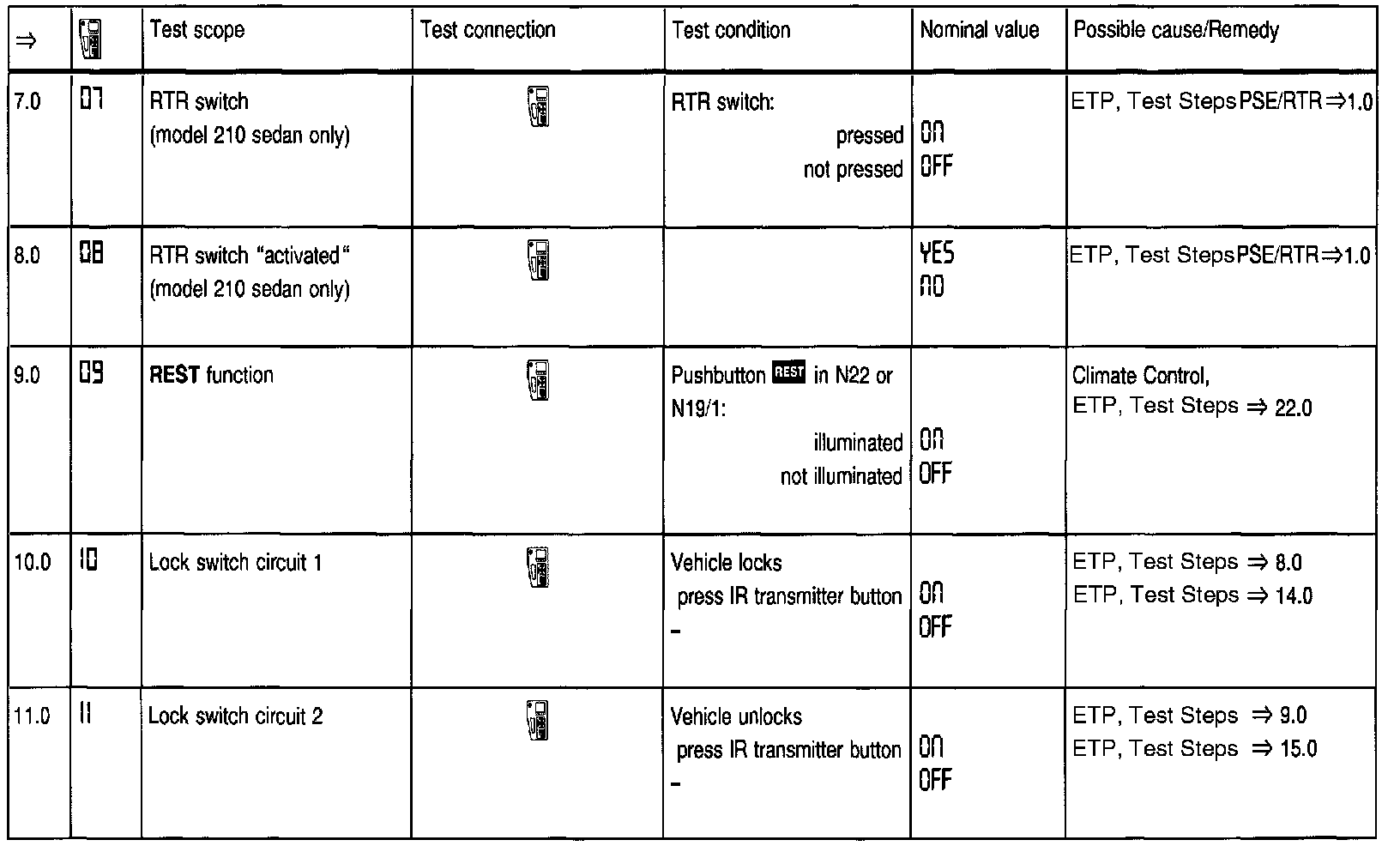 The following tests and activations are possible via the Hand-Held Tester.
