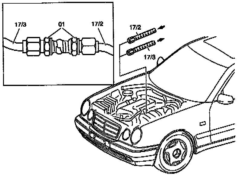 12. Disconnect fuel pipes (17/2) and (17/3) at engine compartment partition.