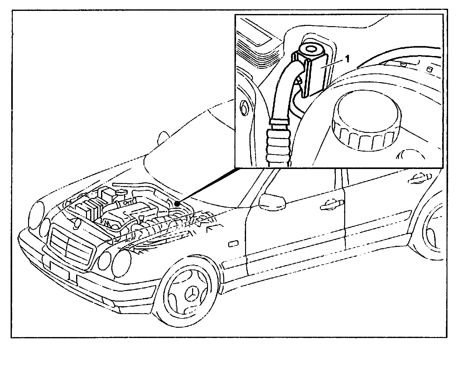 The expansion valve (1) is located at the left rear in the engine compartment next to the brake servo-unit.