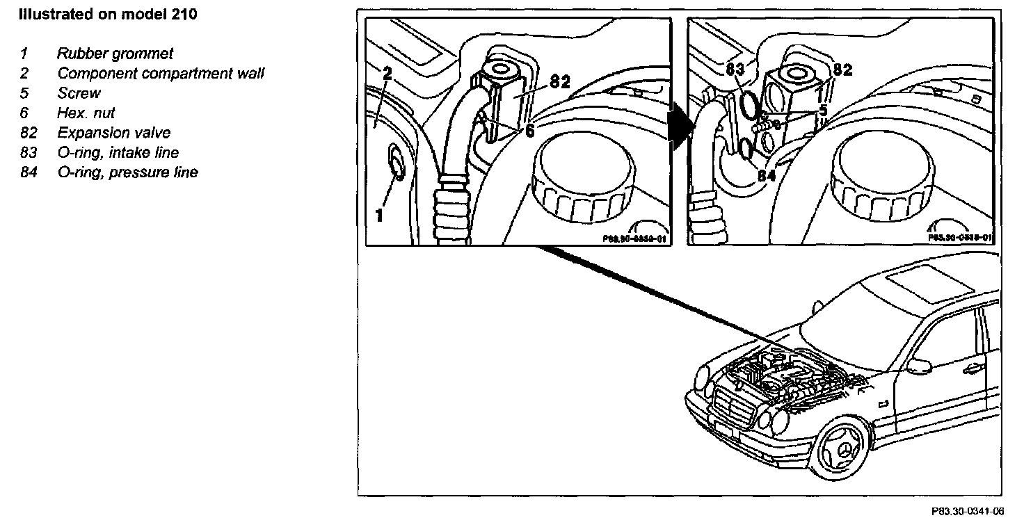 CAUTION: Replace O-rings (83, 84) (moisten with compressor oil).