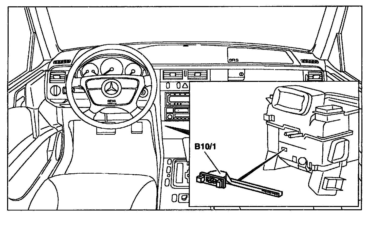 The heater core temperature sensor (B10/1) is located on the heater air conditioning housing behind the heater core