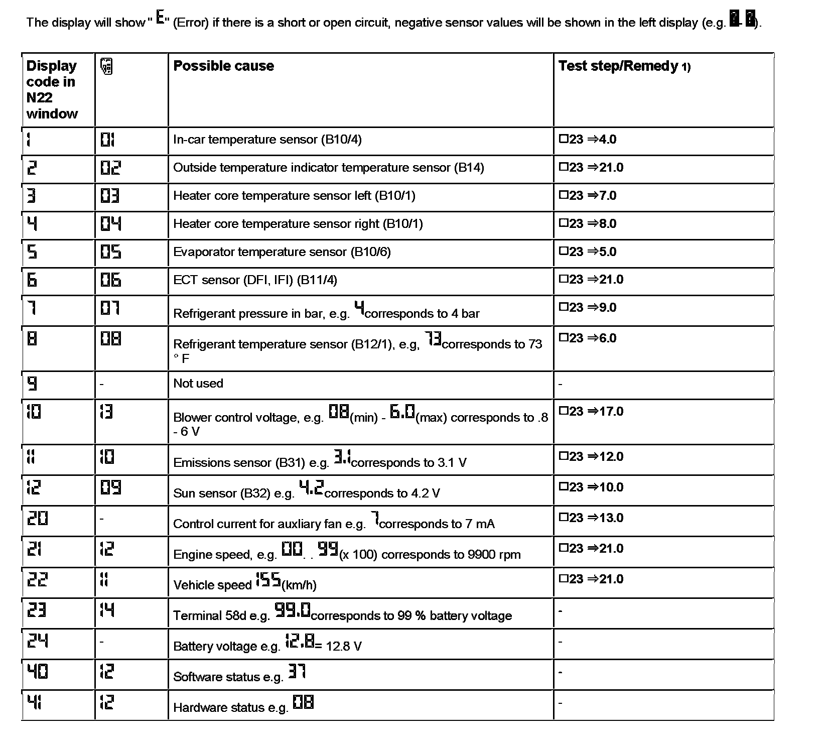 Reading Actual Values (via A/C Pushbutton Control Module [N22])