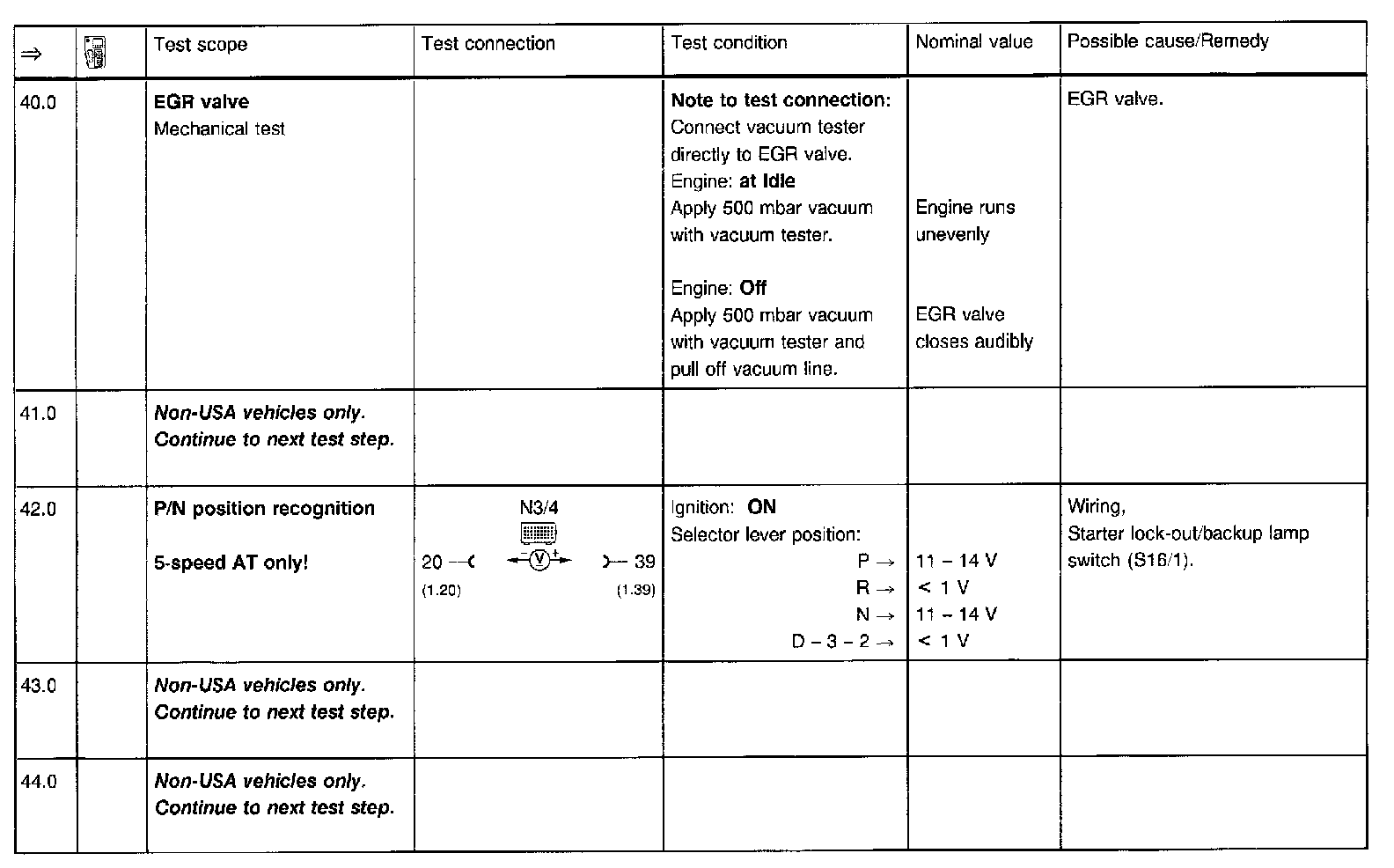Note: The following testing applies only to vehicles with HFM-SFI Fuel Injection/Ign Sys - Up To 5/31/99 (production date). No testing is given for ME-SFI Fuel Injection/Ign Sys - From 6/1/96 (production date).