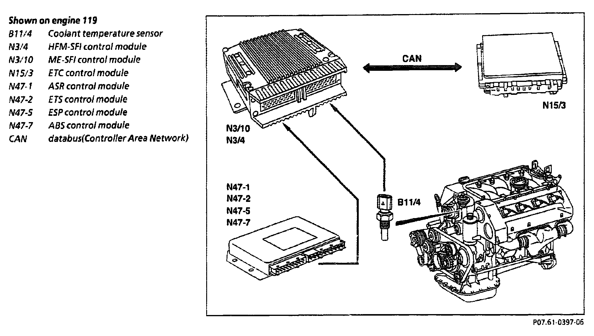 In combination with automatic transmission type 722.6/7, transmission upshift delay is performed completely electronically. No additional components are required.
