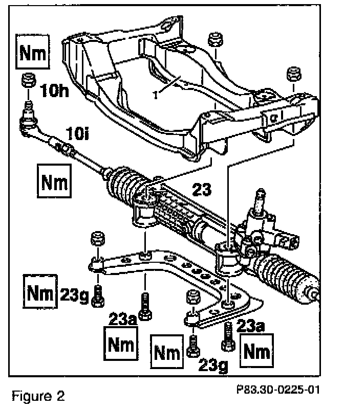 ^ Bolts (23g, Figure 2) fastening the support bracket to the front axle subframe - 50 Nm (was 70 Nm).