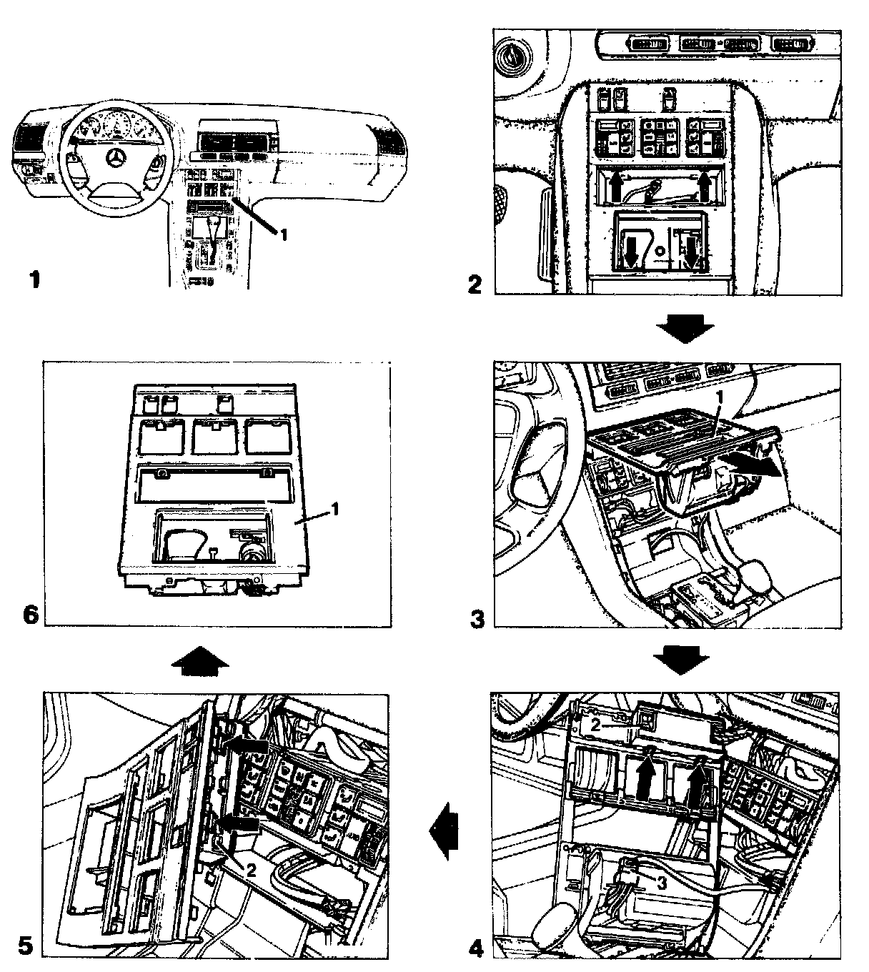Switch strip (2), top and plug connector (3) on ashtray housing