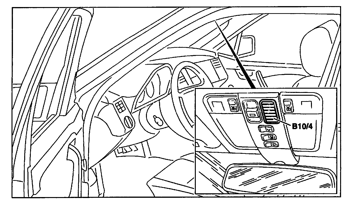 The in-car temperature sensor with aspirator blower (B10/4) is located in the overhead control panel.