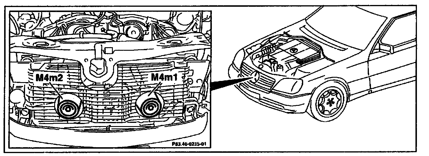 The auxiliary fans (M4) are located behind the radiator shroud.